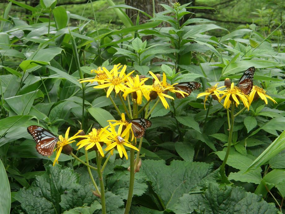 アサギマダラ(蝶)とマルバダケブキ(美ヶ原高原)